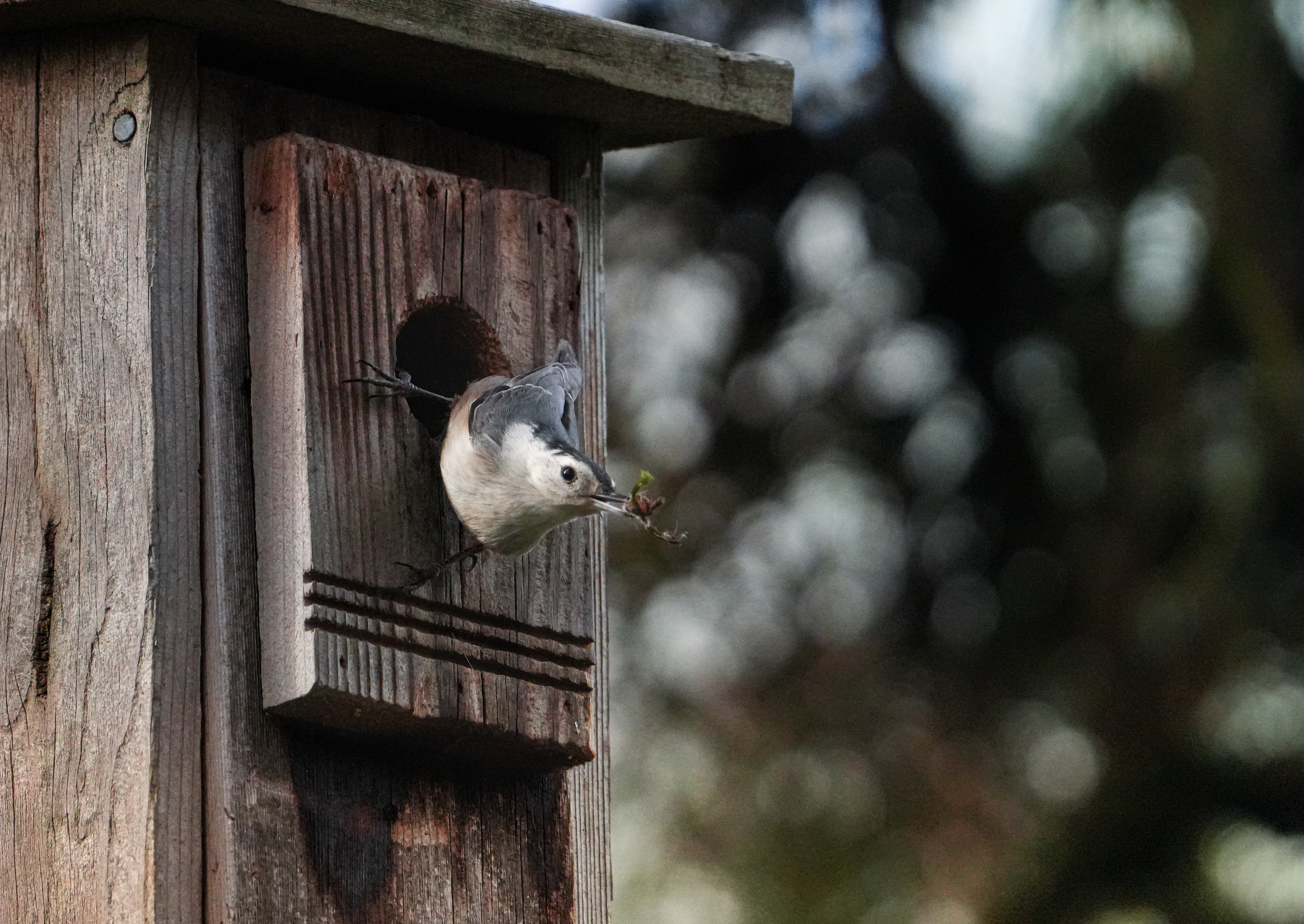 This photo was taken on Willamette University’s campus in downtown Salem! We are monitoring 46 nest boxes on campus; this is one where a pair has started building a nest! Riley Teske (@rileysbirdnest on Instagram)